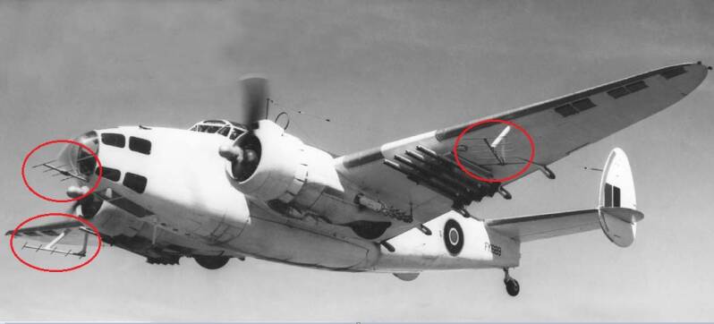 A Lockheed Hudson of RAF Coastal Command. Note the AI/ASV (Airborne Interception/Air to Surface Vessel) radar antennas.