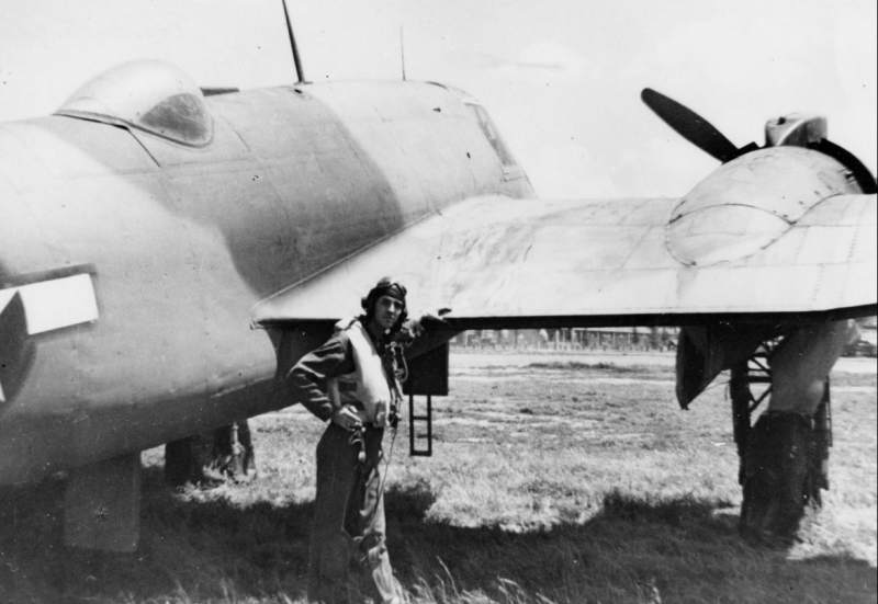 Above left: Captain Varillus O. Jones (Source: Find a Grave). Above right: A 415 NFS USAAF radar operator and his Beaufighter. (USAAF).