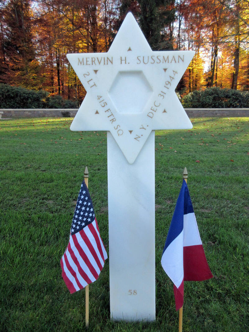 Above right: Mervin Sussman's grave at Epinal Cemetery. (Source: Find a Grave).