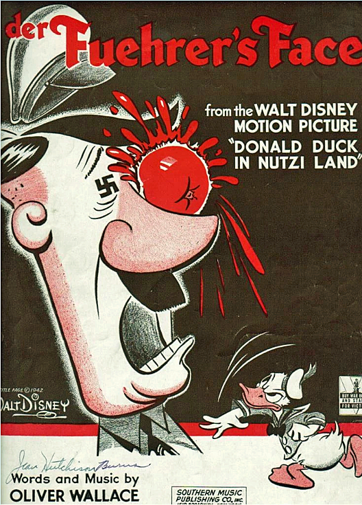 Above left and middle: film and music info relating to the Disney movie 'Der Fuehrer's Face'. Source: Disney Fandom website.