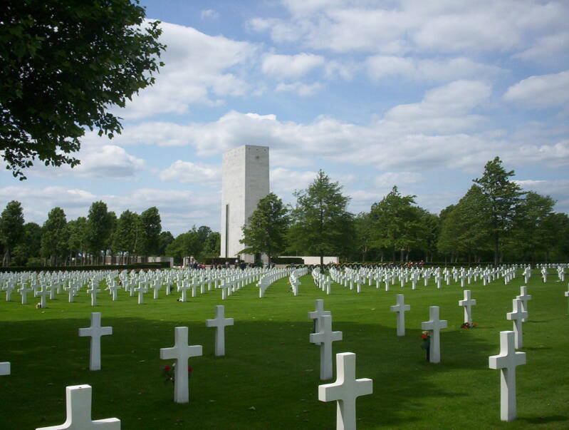 As from 1947 the cemetery was reorganised. The Allied, Russian and German dead were reburied elsewhere and some 56% of the American dead were repatriated for reburial in the USA.