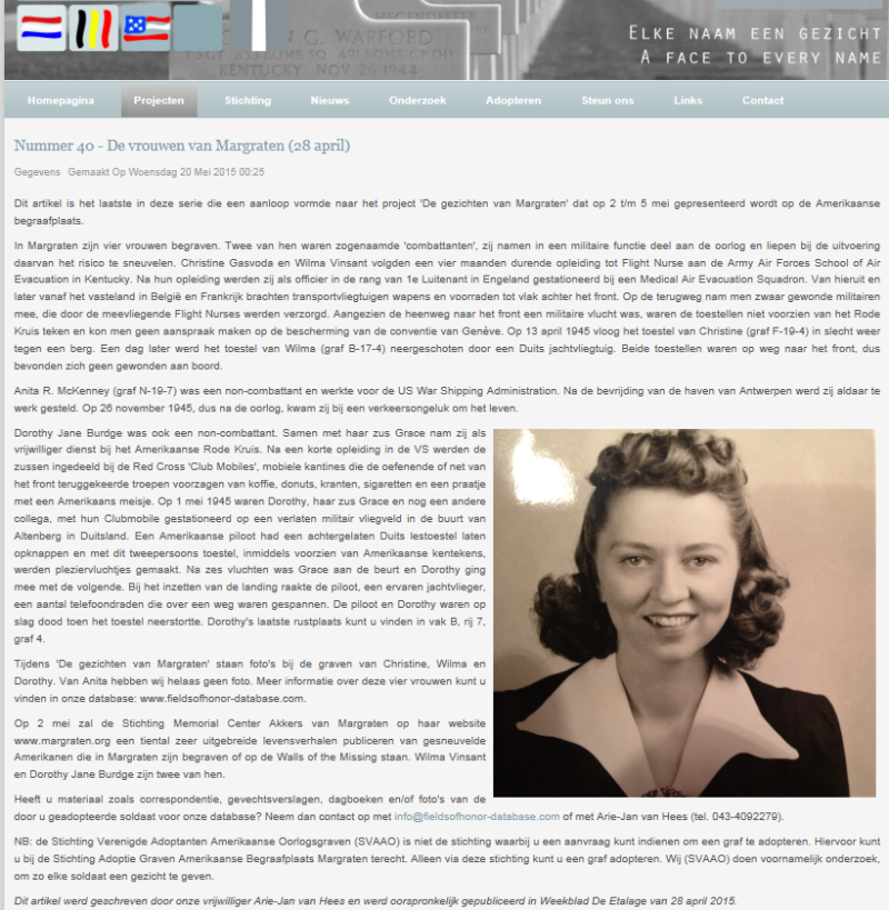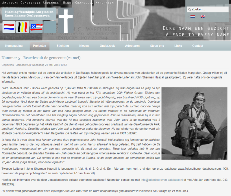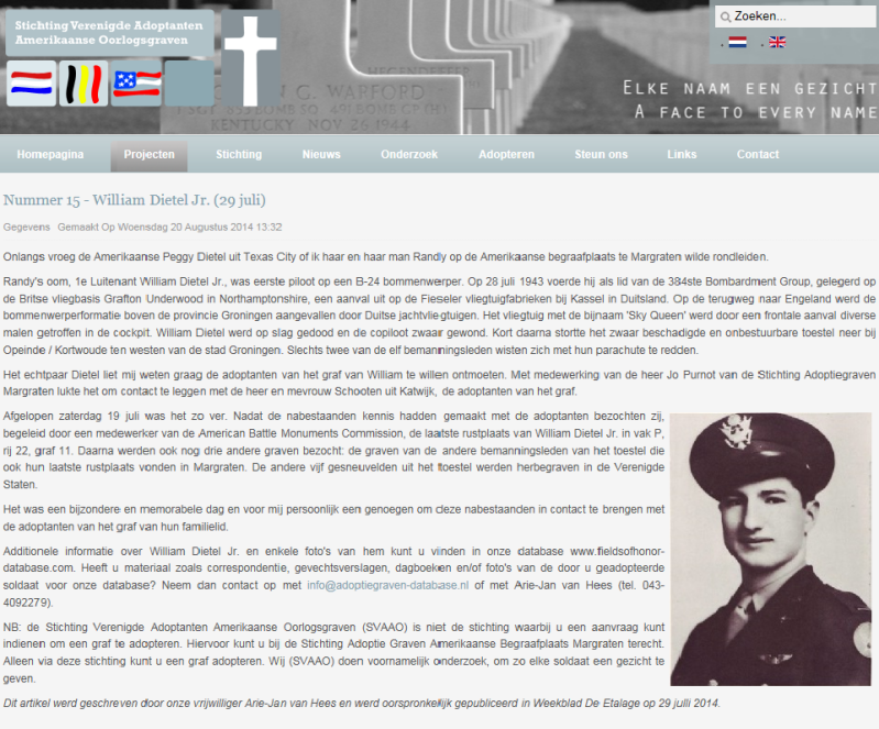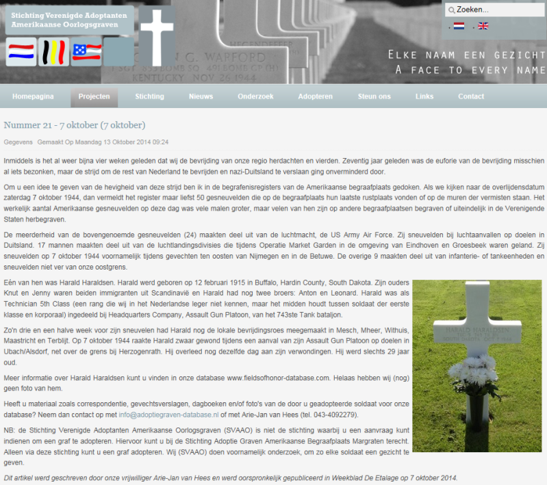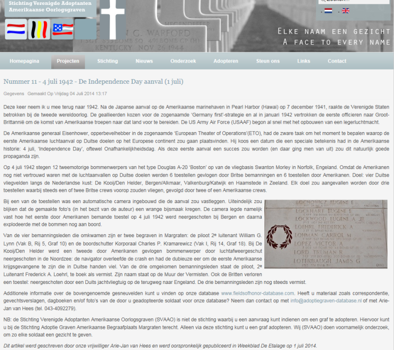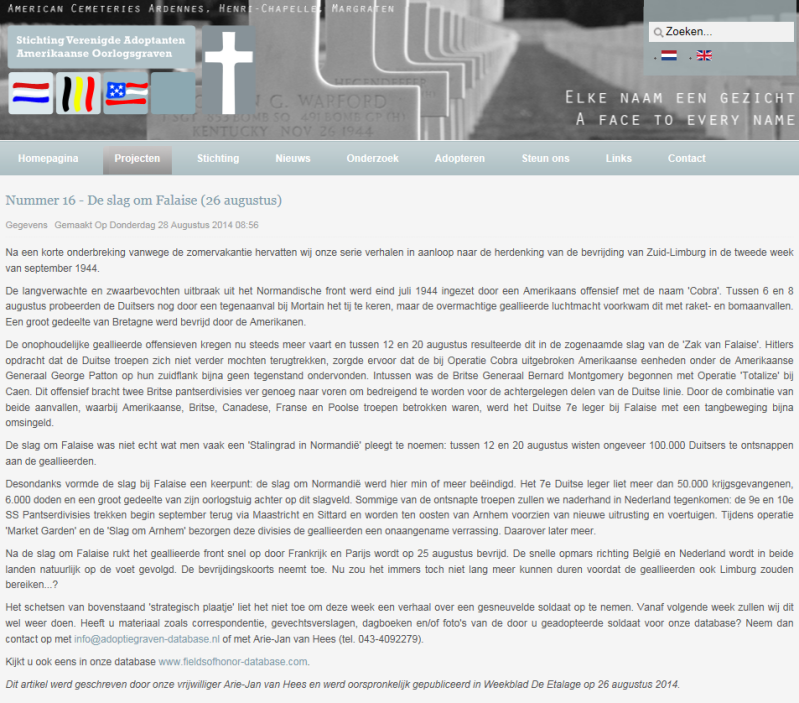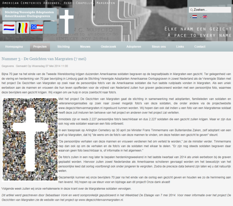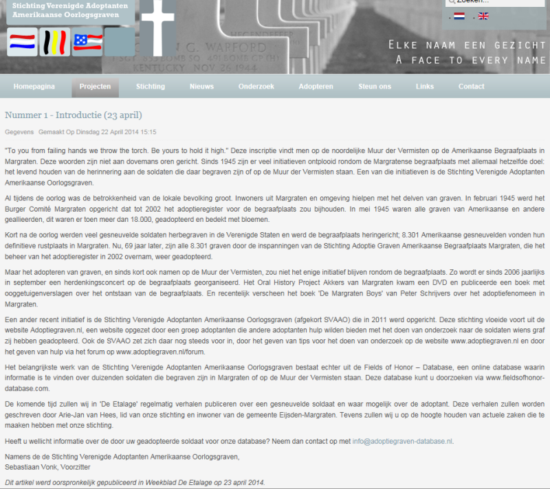 De aanleiding hiervoor was de eerste keer dat onze Stichting Fields of Honor (toen nog genaamd 'Stichting Verenigde Adoptanten van Amerikaanse Oorlogsgraven' /SVAOO) het project 'De gezichten van Margraten' mocht organiseren op de Amerikaanse Begraafplaats.