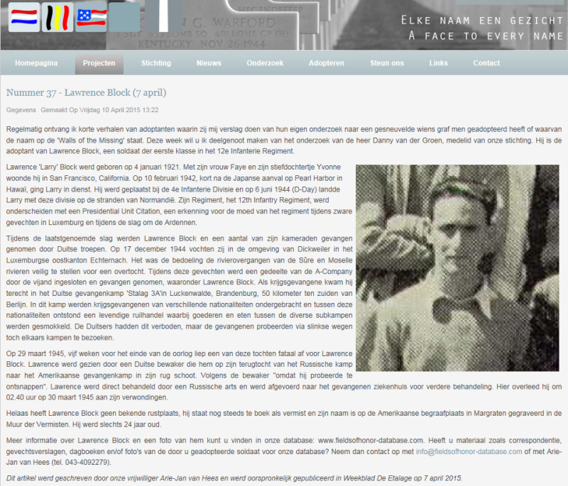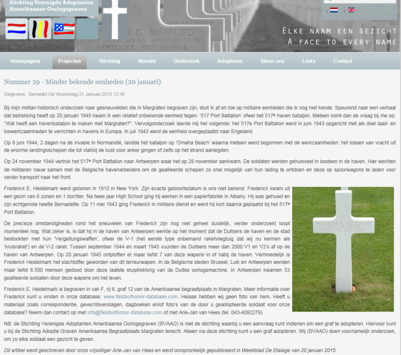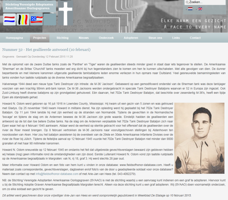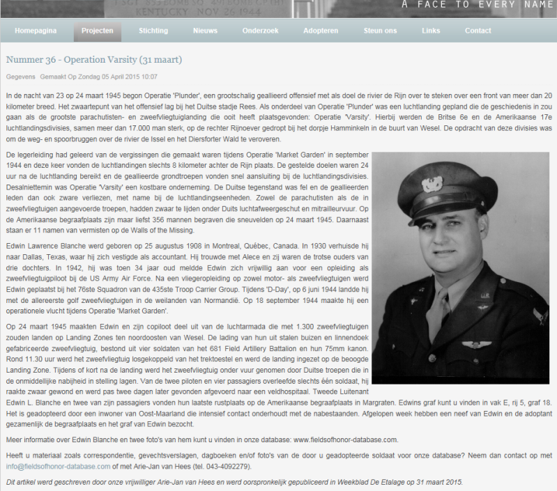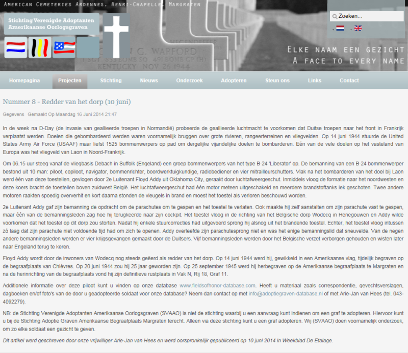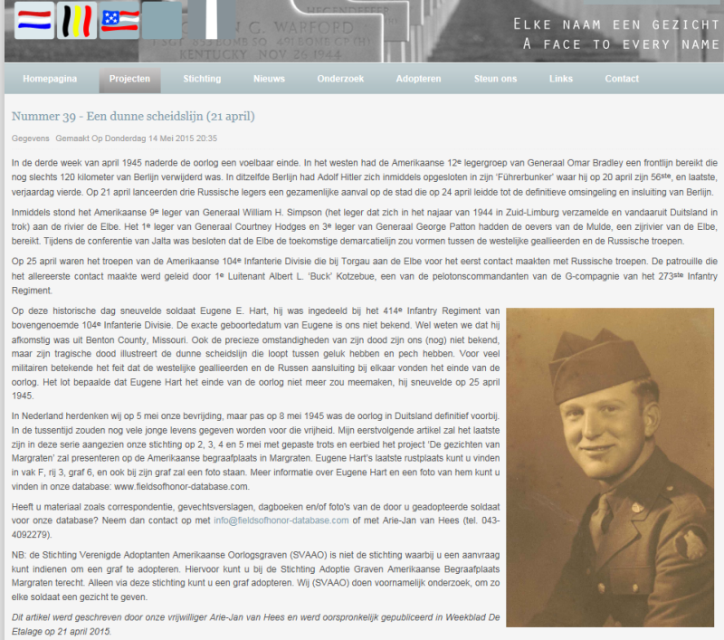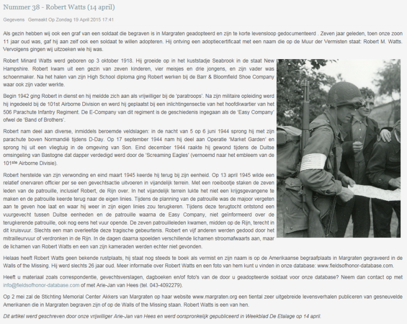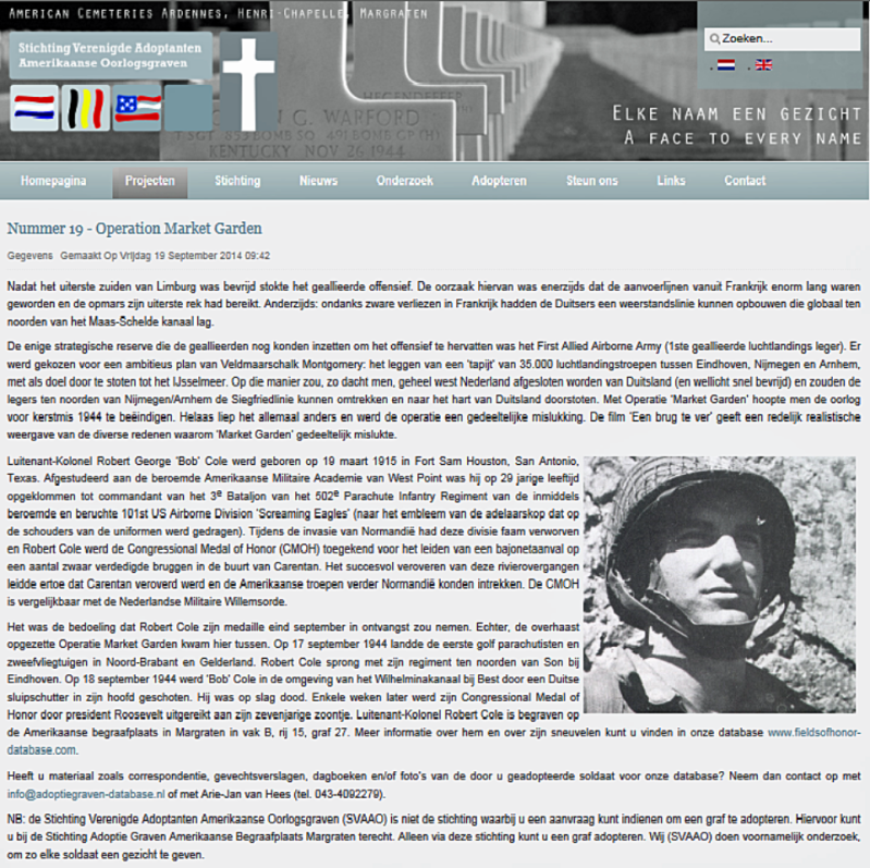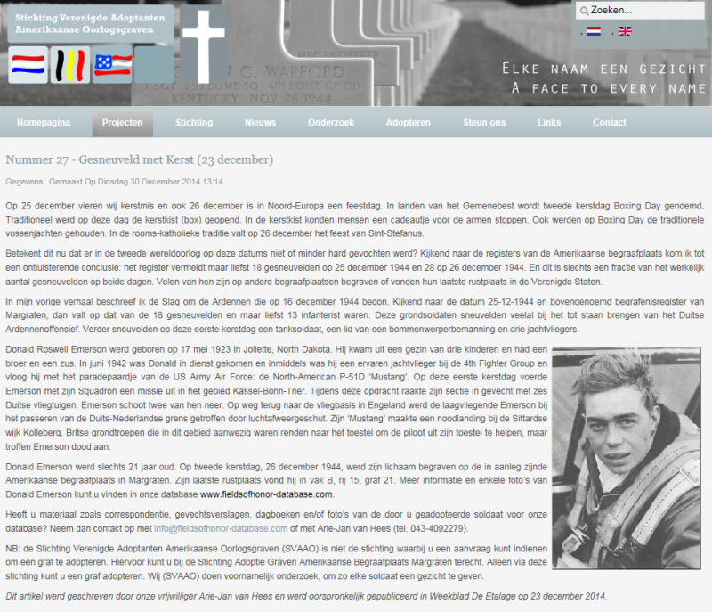 De aanleiding hiervoor was de eerste keer dat onze Stichting Fields of Honor (toen nog genaamd 'Stichting Verenigde Adoptanten van Amerikaanse Oorlogsgraven' /SVAOO) het project 'De gezichten van Margraten' mocht organiseren op de Amerikaanse Begraafplaats.