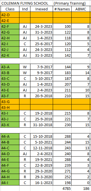 So far we have indexed 4463 names of cadets who were in Pilot Classes 42-E to 44-I.