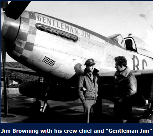 Captain James W. Browning was a good friend of the famous 357 FG ace 'Bud' Anderson. The moderator of this website personally corresponded with Mr. Anderson and received his permission to use the above photographs from his collection and website.