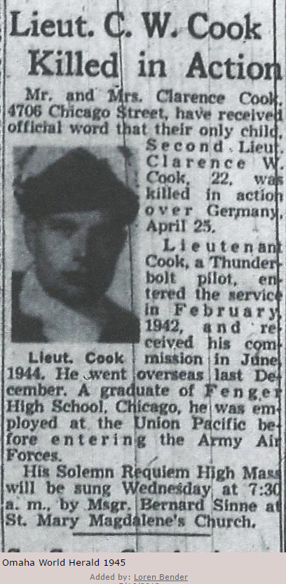 KIA 25th April 1945 as pilot of P-47D / #44-32976 / W3-? / MACR 14160.
