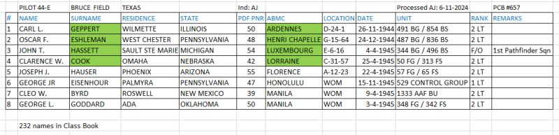 Pathfinder crews were volunteers and serving on a detached duty status from other bomb groups within the IX Bomber Command structure. For example, the pilot of #42-96158 (Lt William Enneking was serving with the 397 BG / 598 Sqn.